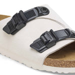 The casual BIRKENSTOCK Zürich Tech takes its inspiration from the classic Zürich model and stands out with its tech buckles which replace the classic pin buckles. The futuristic look of this version unites design and functionality. The color-coordinated outsole rounds off the shoe€™s look of sophistication. The upper is made from especially soft suede which hugs the foot like a second skin.